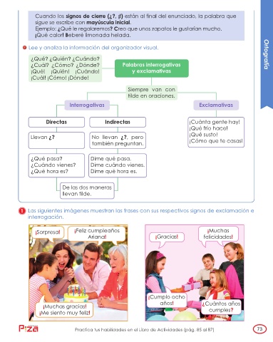 Practica tus habilidades en el Libro de Actividades (pág. 85 al 87) 73
