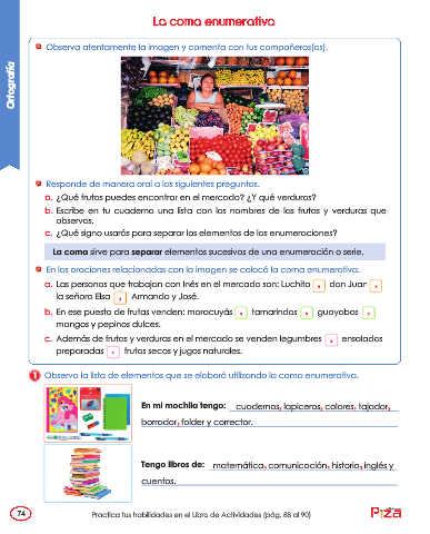 1 Observa la lista de elementos que se elaboró utilizando la coma enumerativa.