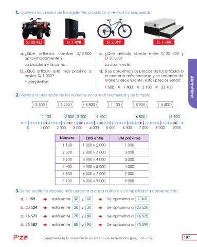 Observa los precios de los siguientes productos y verifica las respuestas.