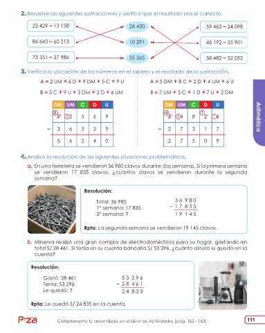 Resuelve las siguientes sustracciones y verifica que el resultado sea el correcto.