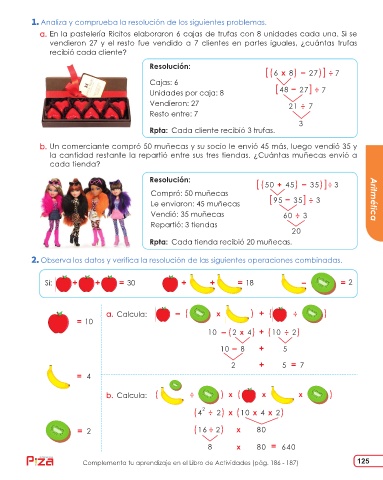 Observa los datos y verifica la resolución de las siguientes operaciones combinadas.