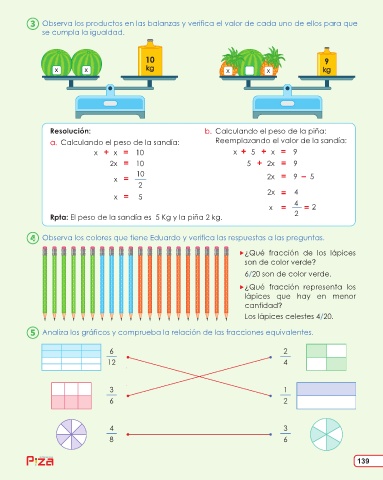 Rpta: El peso de la sandía es 5 Kg y la piña 2 kg. 2
