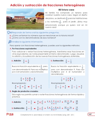 Para adicionar o restar fracciones heterogéneas, transforma esas fracciones en