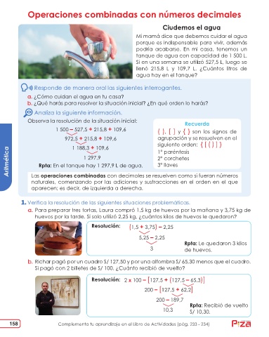 Aritmética Rpta: En el tanque hay 1 297,9 L de agua. 1° paréntesis