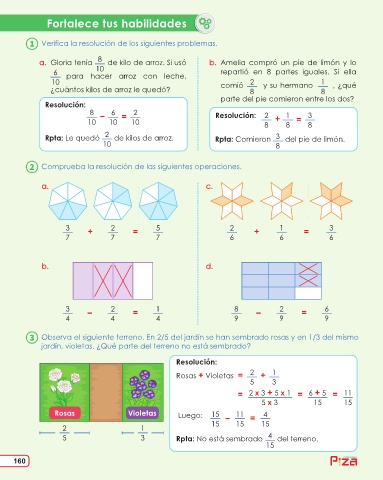 a. Gloria tenía de kilo de arroz. Si usó b. Amelia compró un pie de limón y lo