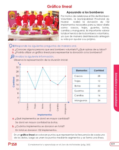 b. ¿Podrás utilizar un gráfico lineal para representar la donación a los bomberos?
