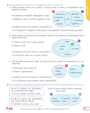 En las siguientes situaciones, se ha hallado la unión de conjuntos