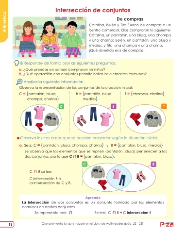 a. Sea: C = {pantalón, blusa, chompa, chalina} y B = {pantalón, blusa, medias}