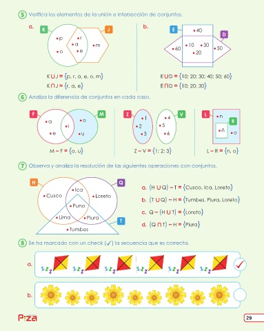 Observa y analiza la resolución de las siguientes operaciones con conjuntos.