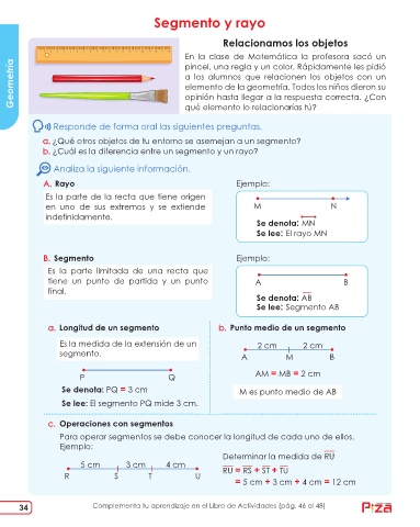 a. ¿Qué otros objetos de tu entorno se asemejan a un segmento?