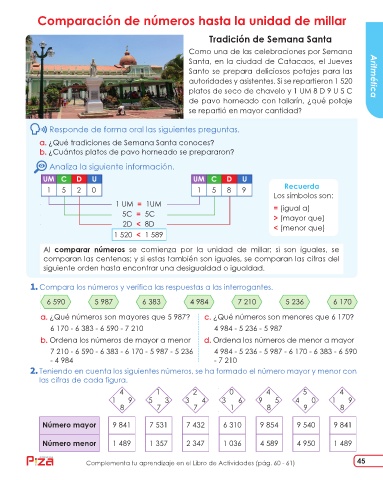 a. ¿Qué números son mayores que 5 987? c. ¿Qué números son menores que 6 170?