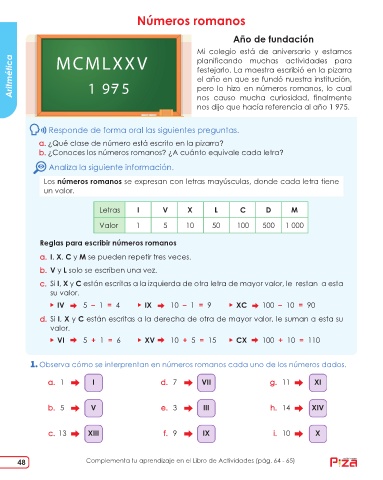 b. ¿Conoces los números romanos? ¿A cuánto equivale cada letra?