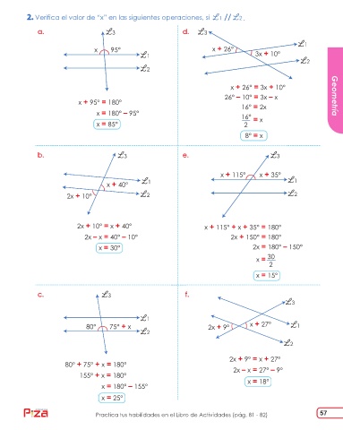 26° – 10° = 3x – x Geometría