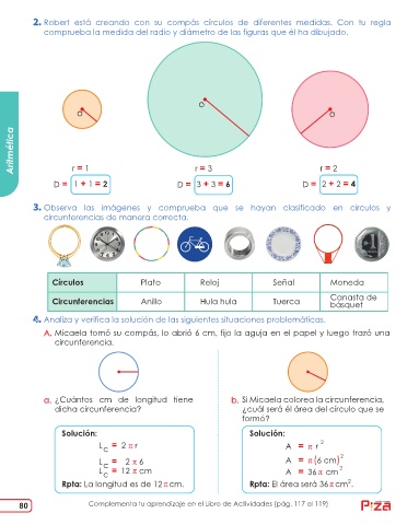 comprueba la medida del radio y diámetro de las figuras que él ha dibujado.