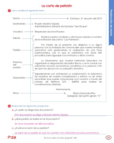 Revisa tu Libro de Área (pág. 84 - 85) 99