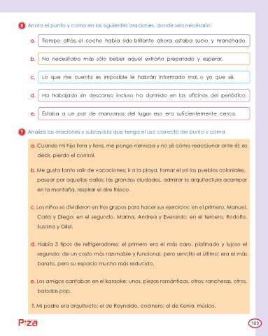 8 Anota el punto y coma en las siguientes oraciones, donde sea necesario.