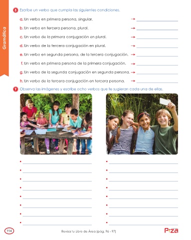 8 Escribe un verbo que cumpla las siguientes condiciones.