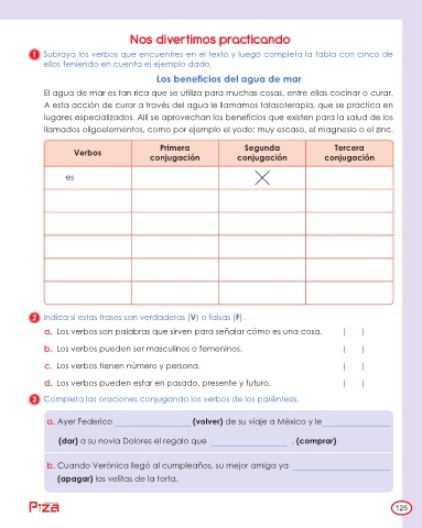 1 Subraya los verbos que encuentres en el texto y luego completa la tabla con cinco de