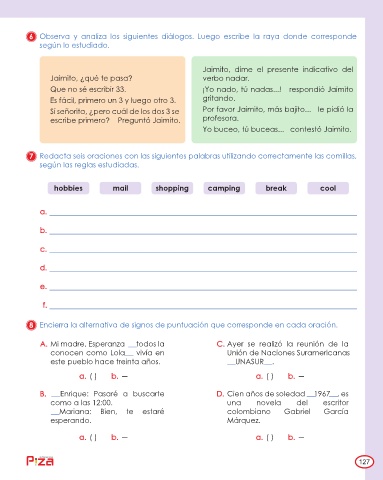 8 Encierra la alternativa de signos de puntuación que corresponde en cada oración.