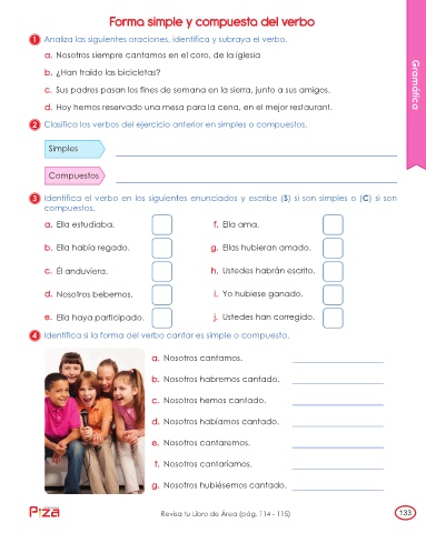 3 Identifica el verbo en los siguientes enunciados y escribe (S) si son simples o (C) si son