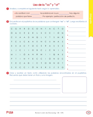 2 Encuentra en el pupiletras doce palabras que contengan “cc” o “ct”. Luego escríbelas al Ortografía
