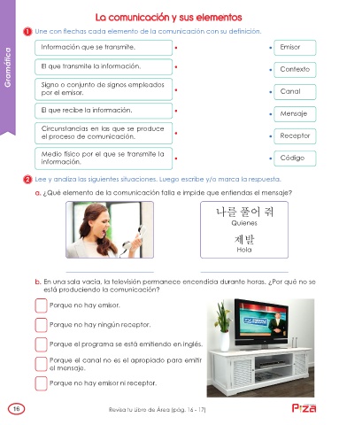 1 Une con flechas cada elemento de la comunicación con su definición.