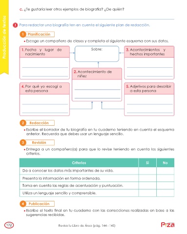 Producción de textos 3 Para redactar una biografía ten en cuenta el siguiente plan de redacción.