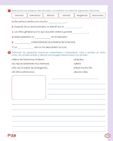 7 Selecciona las palabras del recuadro y completa con ellas las siguientes oraciones.