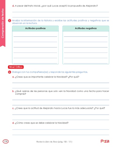 Comprensión de textos 5 Analiza la información de la historia y escribe las actitudes positivas y negativas que se