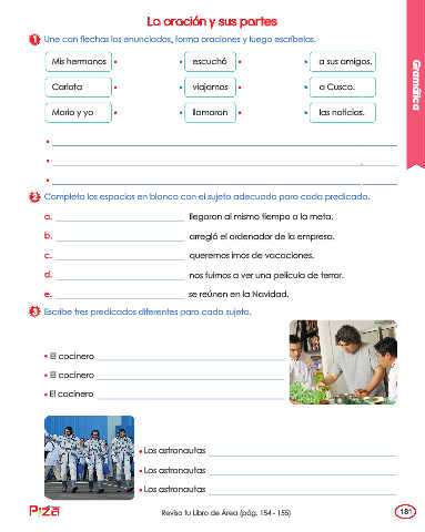 2 Completa los espacios en blanco con el sujeto adecuado para cada predicado.