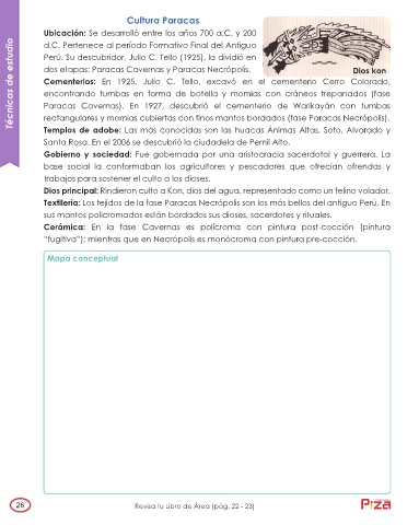 Técnicas de estudio dos etapas: Paracas Cavernas y Paracas Necrópolis. Dios kon