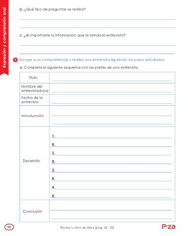 a. Completa el siguiente esquema con las partes de una entrevista.