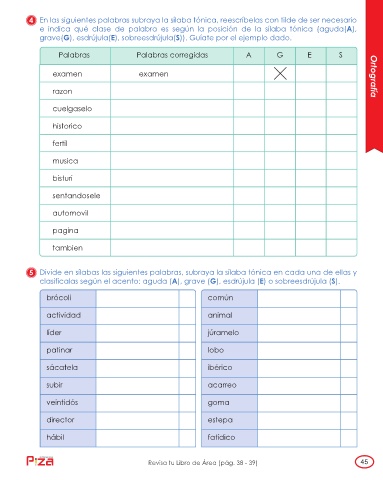 Revisa tu Libro de Área (pág. 38 - 39) 45