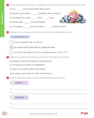 3 Lee las siguientes oraciones y complétalas con el artículo contracto que corresponda.