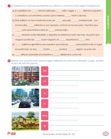 7 Completa las oraciones escribiendo los artículos o contracciones según corresponda.