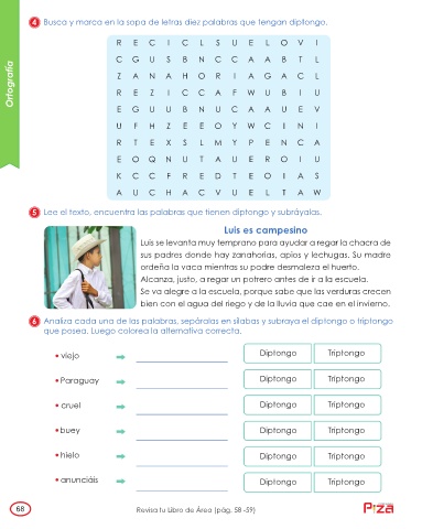 4 Busca y marca en la sopa de letras diez palabras que tengan diptongo.