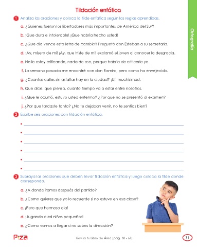 1 Analiza las oraciones y coloca la tilde enfática según las reglas aprendidas.
