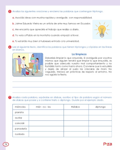 5 Analiza las siguientes oraciones y encierra las palabras que contengan triptongo.