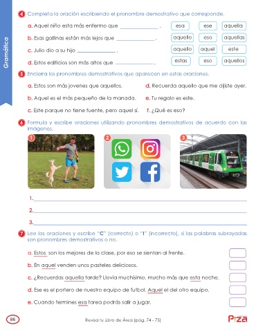 4 Completa la oración escribiendo el pronombre demostrativo que corresponde.