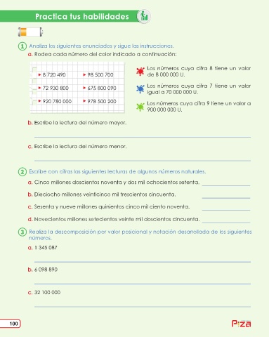 Escribe con cifras las siguientes lecturas de algunos números naturales.