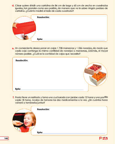 e. Un comerciante desea poner en cajas 1 728 manzanas y 1 536 naranjas, de modo que