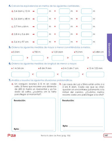 a. Un canguro avanza 2,15 m en cada b. Las casas de Luis y Silvia están entre sí a
