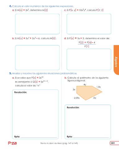 Revisa tu Libro de Área (pág. 147 al 149) 201