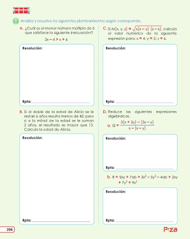 B. Si al doble de la edad de Alicia se le D. Reduce las siguientes expresiones