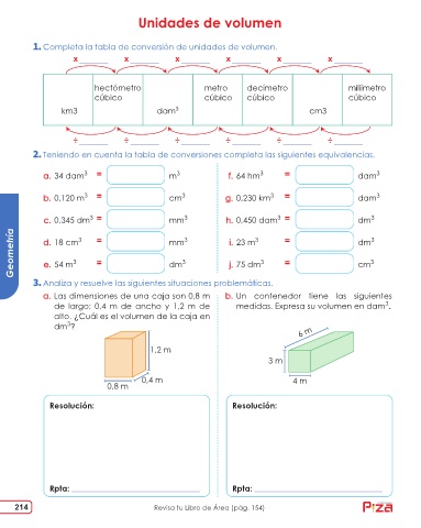 Geometría d. 18 cm 3 = mm 3 3 i. 23 m 3 3 = dm 3 3