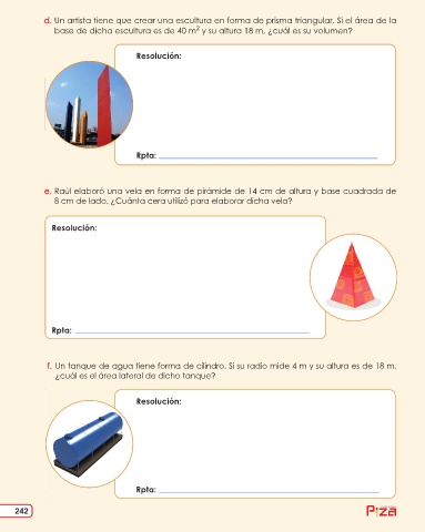 d. Un artista tiene que crear una escultura en forma de prisma triangular. Si el área de la