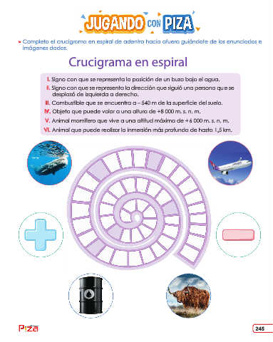 Completa el crucigrama en espiral de adentro hacia afuera guiándote de los enunciados e