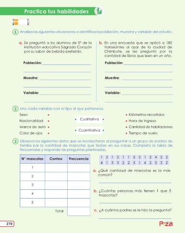 a. Se preguntó a los alumnos de 5° de la b. En una encuesta que se aplicó a 180