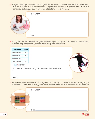 d. Abigail distribuye su sueldo de la siguiente manera: 10 % en ropa, 45 % en alimentos,