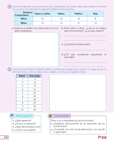 a. Elabora un gráfico de doble barra con los b. Entre niñas y niños, ¿cuál es el residuo
